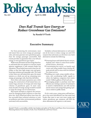 Those are the main conclusions of the Antiplanner’s new Cato paper, “Does Rail Transit Save Energy or Reduce Greenhouse Gas Emissions?” While some rail transit operations are energy and CO2 efficient, the energy and CO2 costs of construction overwhelm any savings. Thus, from an environmental viewpoint, rail transit is almost always a bad investment.
